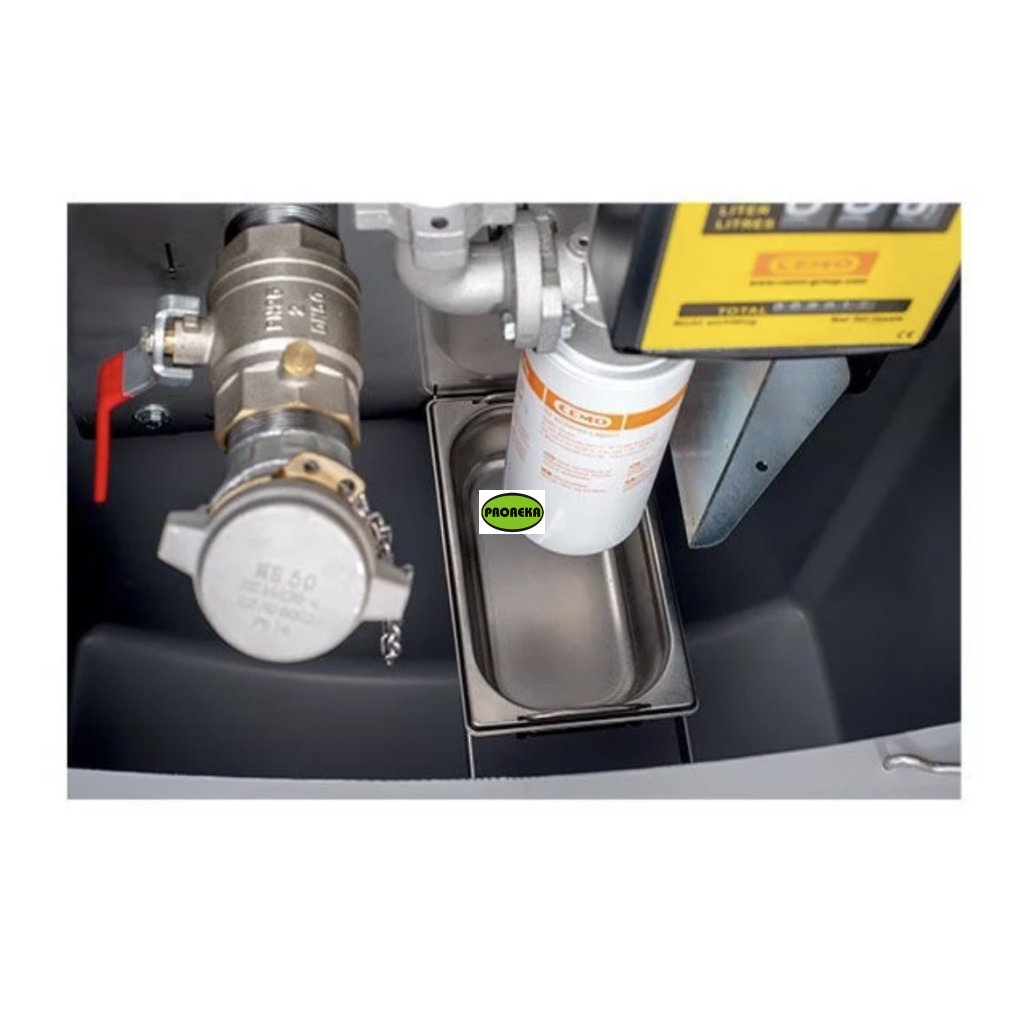 Integrovaná odkapávací vanaVýstražné zařízení proti úniku (vizuální a zvukové)Plnicí přípojka s TW spojkouUzavírací ventil a převodník mezních hodnotUkazatel hladinyPočítadlo K33*Filtr s odlučovačem vodyOtočný hadicový naviják s 8 m hadicí DN 25Vypouštěcí potrubíKontrolní otvor s výklopným krytemvč. Odvětrávání a odvzdušňováníPneumatický ukazatel hladiny.